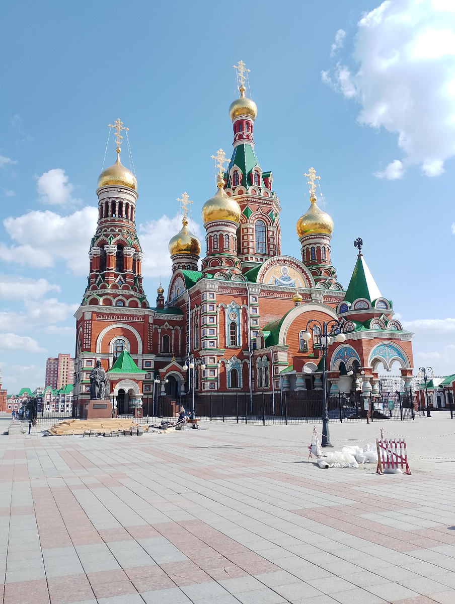 Решили сегодня спонтанно съездить в город Йошкар-Ола. Это столица республики Марий Эл. Там у нас живут родственницы. Поэтому раз в год кто-нибудь из нас туда едет. В этот раз решили просто прогуляться, так как времени было мало. Надо было успеть забрать детей до 18.00 из сада. Выехали на час позже, чем планировали, примерно, в 9 утра. В 11 уже были там. Пробок на трассе не было, большого потока тоже. Даже остановились один раз размяться. Поехали, кстати, на машине впятером: родители, сестра, я и моя Лиза. Можно ехать на автобусе от любого автовокзала , по времени также 2-2,5 часа. Можно на поезде, но, так как он останавливается часто, время поездки увеличивается до 2 часов 50 минут. Город, конечно, интересный, есть, что посмотреть. Несколько лет назад преобразили набережную, построили много зданий красивой архитектуры, есть там парк культуры и отдыха с аттракционами. Мы очень хотели прокатиться на колесе обозрения, но у него сломались кондиционеры, и нам пришлось пойти на поиски друг