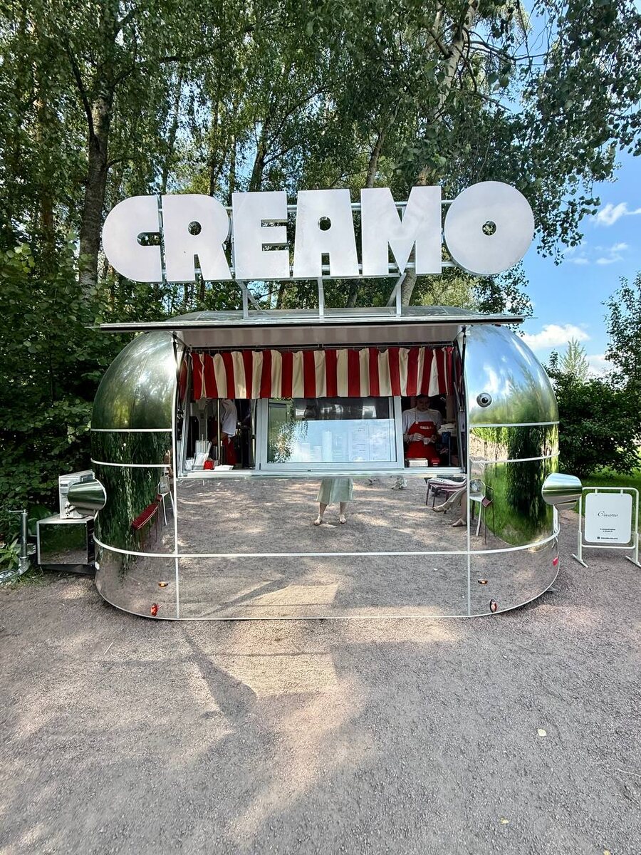 Один из админов сегодня по служебной необходимости оказался в Мещерском парке (да-да, не устанем радоваться прелестям нашей работы) и, разумеется, невозможно было не заглянуть в ультра-модную локацию этого лета - джелатерию Creamo от модного столичного кондитера Елены Набиуллиной. Для начала выяснили, чем джелато отличается от мороженого (мы-то наивно думали, что это одно и то же, но на разных языках). Оказывается, в джелато меньше содержание молочных жиров и оно делается из молока (или фруктов, если это сорбеты), а мороженое - на основе сливок и в меню оно называется «мягкое». Поклонники открывшегося 2 месяца назад заведения очень хвалят кето-эскимо без сахара и фирменное печенье. К полноценной дегустации сегодня мы, увы, были не готовы, но непременно вернемся с гораздо более подготовленным аппетитом - благо, впереди еще целый месяц лета. Идеальным сценарием будет приехать в будний день и, взяв мороженое/джелато, направиться к ближайшему пруду любоваться кувшинками 💖 Creamo открыт