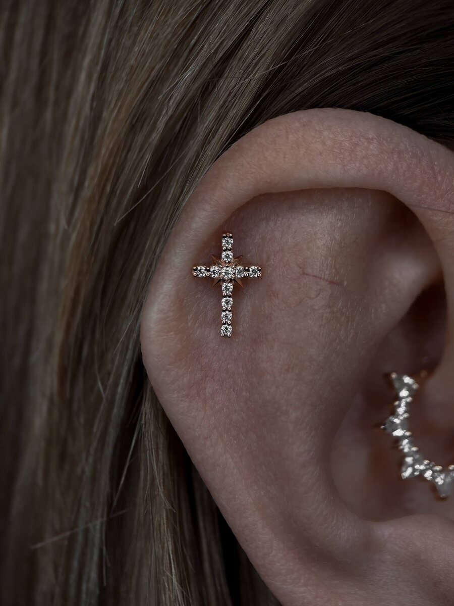 Выполнили прокол Хеликс с украшением «Rasputin» в розовом золоте