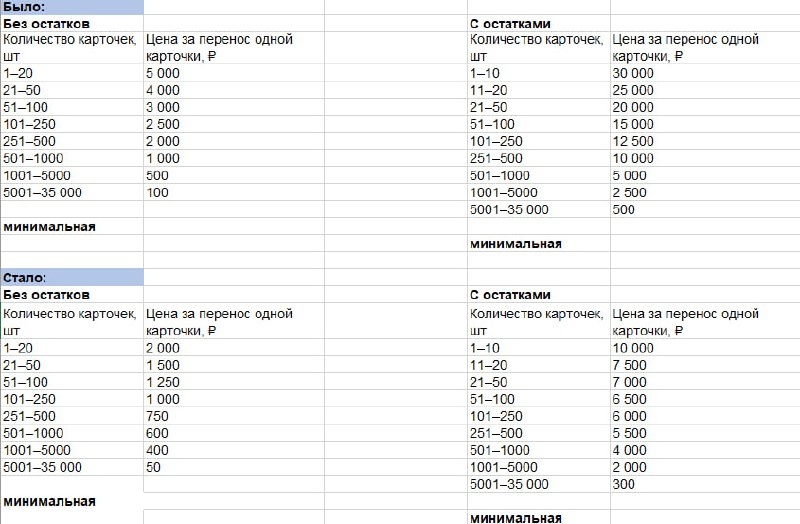 WB снижает стоимость переноса карточек между кабинетами ❕ С 29 июля перенос карточек товаров между кабинетами стал дешевле: WB снизил цену за услугу. Как и раньше, действует правило: чем больше карточек переносите, тем меньше платите за одну. Важно❕ — Снижение цены касается только новых заявок, созданных после 29.07 — Старые заявки останутся по прежней стоимости — Новые условия действуют до 27 сентября 2025 года включительно Если планировали перенос карточек, то сейчас самое время оптимизировать каталоги и сделать это по сниженной цене. Подробности по тарифам смотрите в таблице 👻👻👻👻👻👻 #maxnews_wb