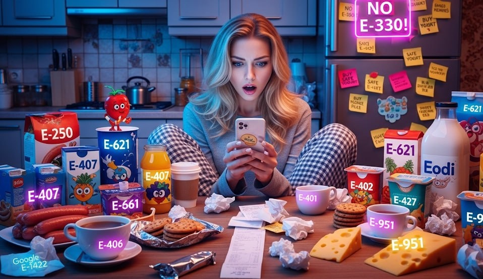 Разоблачения пищевой индустрии — сериал, который вы всё равно не досмотрите! Каждый день в соцсетях: 🔘в колбасе — крашеная целлюлоза и усилители вкуса, 🔘в йогурте — сахара больше, чем в торте, 🔘в молоке — пальма, а коровы — в отпуске. 🔘и так далее — пока безопасной не останется лишь упаковка. 🤪 Разоблачений столько, что выгораешь быстрее, чем вскипает овсянка. Вчера враг — E‑407, а сегодня атакует E‑472e. Минус спокойствие, плюс тревожный шопинг. Добавьте сюда цены, которые не щадят ни рацион, ни нервы — и в итоге выбираешь не лучшее, а то, что «хоть как-то выжить». Правда в том, что идеального продукта не бывает. Сегодня избегаешь «Е», завтра в столовой — всё равно съешь не лучшее. А вредности давно пришли не только из еды — но и из косметики, воздуха и даже подушки. А если добавить сигареты, алкоголь, «синее» свечение телефона и токсичного начальника — эти «Е» вообще теряются в фоне. 🤩 Смотреть на состав — полезно. Делать из этого квест — не очень. Потому что здоровье — эт
