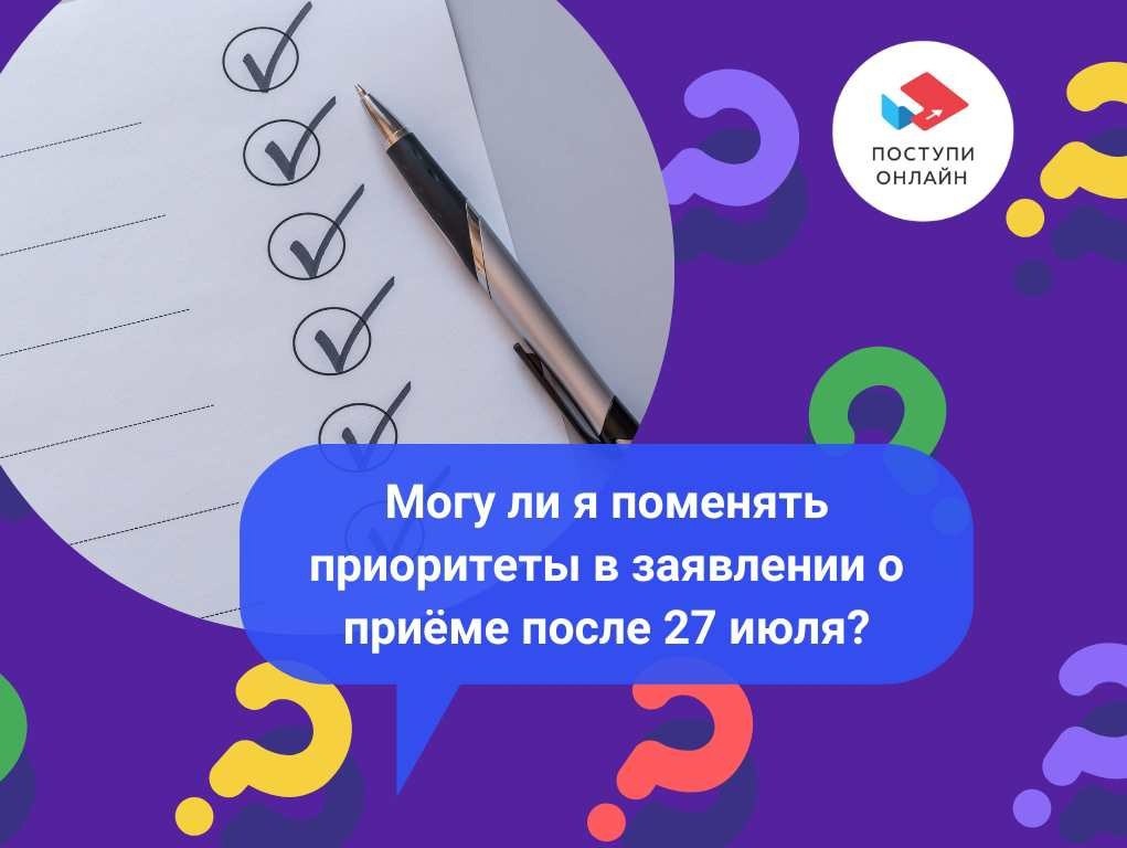 Можно ли поменять приоритеты в заявлении о приёме после 27 июля, когда появятся ранжированные списки на сайтах вузов?