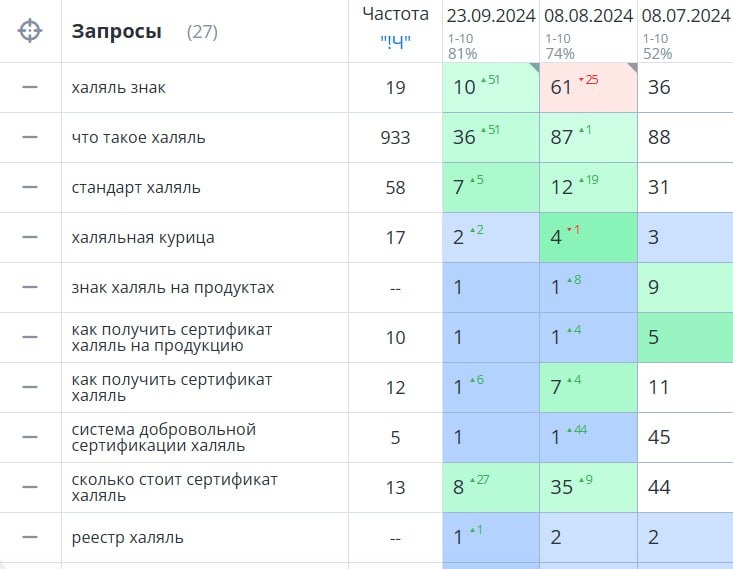 «Зачем нам продолжать SEO? Мы уже в топе» Один из самых частых вопросов. И он вроде бы логичный. Но только если смотреть на SEO как на задачу с конечной точкой. Разберу на конкретном примере. Работаем с проектом уже 1,5 года. Тематика — халяль-сертификация, B2B. Высокий средний чек, длинный цикл сделки, один клиент = контракт на месяцы/года. 1️⃣. Позиции На старте: — 50-е места по ключевым — слабая индексация — ошибки в структуре, CMS, навигации Через 4 месяца — все целевые запросы (и коммерческие, и информационные) — в ТОП-1. Сейчас держим уже 18 месяцев, без просадок. И говорит это нам о том, что это не какая-то разовая вспышка, это уже ритм, систематический процесс. Работу, кстати, и на этом мы не закончили — дальше пошли на расширение. Чем шире семантика — тем больше точек входа. Это новые поводы к контакту, новые сегменты и сценарии. 2️⃣. Трафик Было 20–30 визитов в день. После устранения базовых ограничений — 60–80. Весной — стабильно 150+, летом фиксировали пики по 170. ⚠