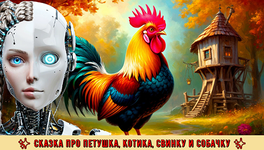 Жили-поживали старик со старухою да любимчик их — золотистый петушок с ярким гребешком. У стариков была волшебная мельница-меленка, которая молола муку и сама печёные пироги готовила. Прослышал барин о чудесной меленке и решил её себе забрать. Как ночь настала, пробрался он тайком ко двору стариков и украл драгоценность. Петушок проснулся утром первым делом и увидел пропажу. Понял он сразу, что надо идти выручать меленку обратно домой. Петушок сказал: — Пойду-ка я к барину добывать нашу помощницу! Вышел петушок в путь-дорогу и повстречал своего друга — пушистого кота Василия. Рассказал петушок Василию свою беду. Кот Василий откликнулся сердечно: — Я пойду с тобой! Вместе веселей будет! Отправились дальше друзья вместе. Через лес идут, вдруг навстречу попалась веселая хрюшка Настасья Петровна. Узнала она историю и решила присоединиться: — Ну, давайте и меня возьмёте! Хоть я и маленькая, но дружба крепче камня! Идут трое друзей дальше, встретилась им верная собака Барбоска. Услыхав расс