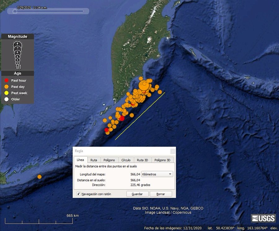 Зона афтершоков на данный момент имеет протяженность около 550 км!! Это гигантский разлом, мега-землетрясение, произошедшее в том же районе, что и землетрясение магнитудой 9,0 в 1952 году.