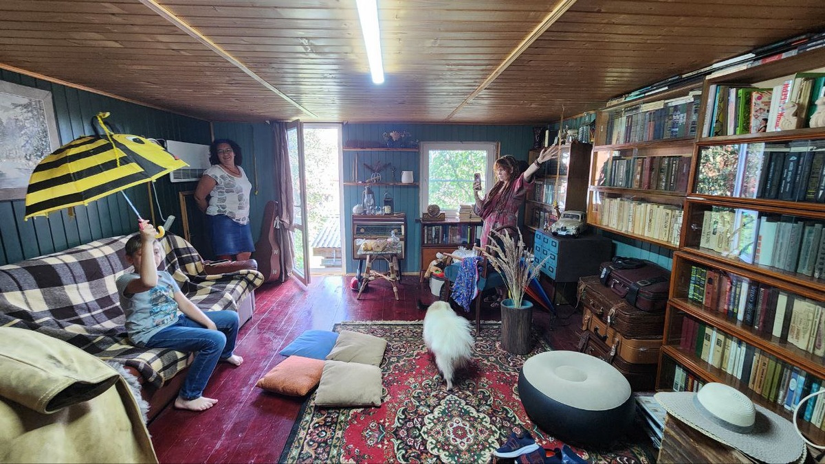 🎨 К нам в село приехала настоящая художница! Не шутка — прямо из Кратово, с цветными кисточками-косичками, камерой (телефона, ну и что). и шикарным именем Тася (как будто из французского романа или артхаусного фильма). Она решила, что наши дети достойны быть написанными маслом — и поехала к нам снимать референсы для будущих картин. Модельный состав: 👧 Аля (моя красавица), 👧 Варя и 👦 Добрыня — дети моей подруги, настоящие киногерои. 📸 Тася фотографировала, вдохновлялась, подружилась с нашим псом Джоном (он влюбился практически моментально), а наши кошки, почувствовав творческую натуру, тут же начали её обнимать. Видимо, решили: "Вот она — муза, надо срочно затирать!" 🍑 Мы пили травяной чай с абрикосами, пирожными и пастилой, ощущая себя персонажами ретро-каталога "Жить просто — красиво". А потом! 🌦 Пошёл грибной дождь. Солнце светит, капли как виноградины, воздух как в фильмах Миядзаки. Только австралийских овчарок не хватало... А нет — у Таси есть две, дома: 🐶 Брусника и 🐶