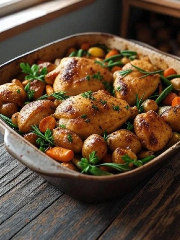 Простой и вкусный ужин для всех: курица с овощами в духовке