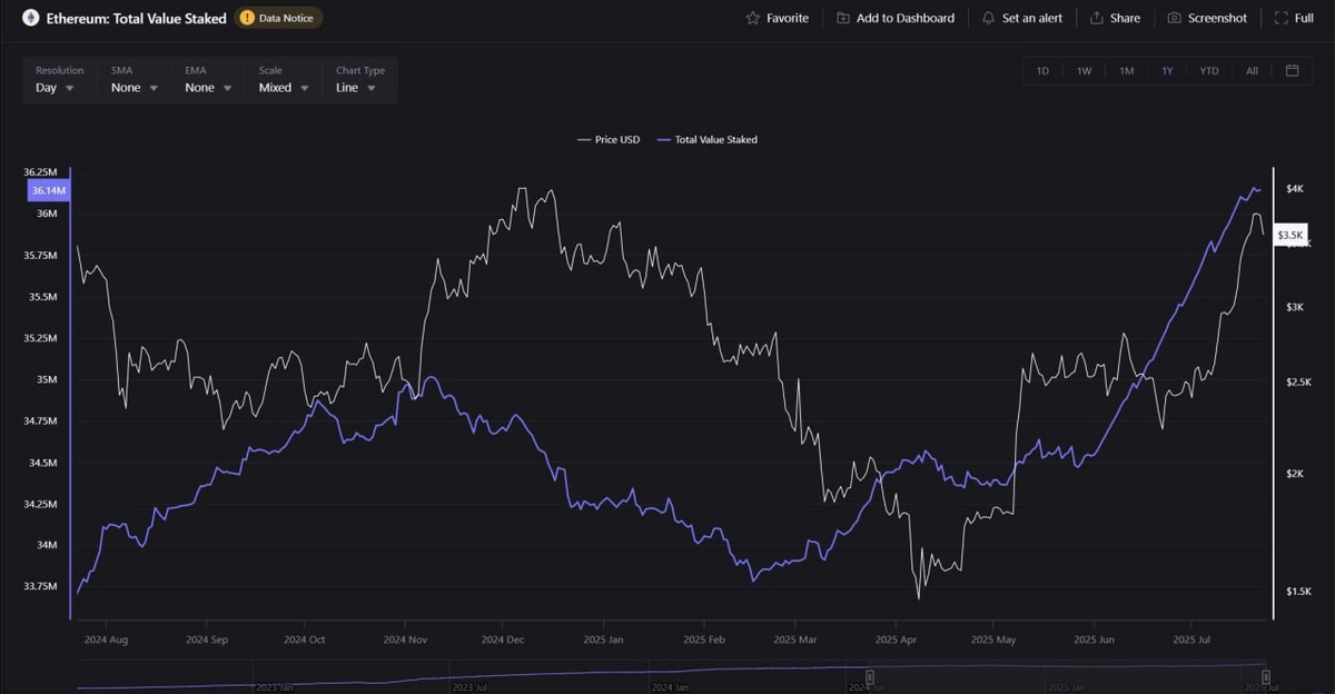 The staked ETH percentage is climbing, keeping that upward trend alive since February. 📈