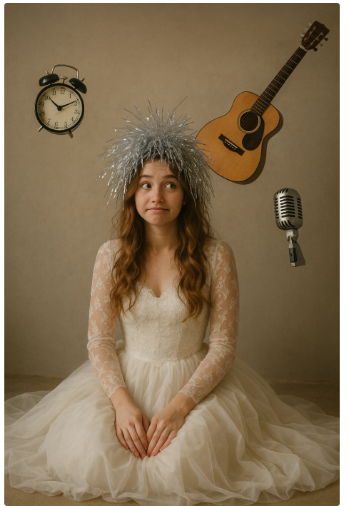 Улька сидит нарядная, в комнате, ждёт жениха, Олега, у них сегодня свадьба.