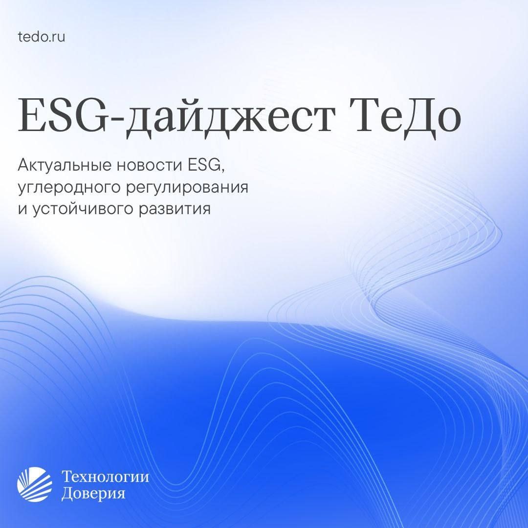 В условиях глобальных вызовов компаниям важно оставаться в курсе ключевых трендов устойчивого развития. В ESG-дайджесте ⚡️ТеДо вы сможете найти: 🔹 Важные события и изменения по ESG-повестке 🔹 Аналитику и разбор тематических кейсов 🔹 Практические рекомендации по внедрению ESG-инициатив 🔹 Регуляторные новости ➡️Новый выпуск дайджеста уже доступен по ссылке Подписаться на рассылку #ТеДотека