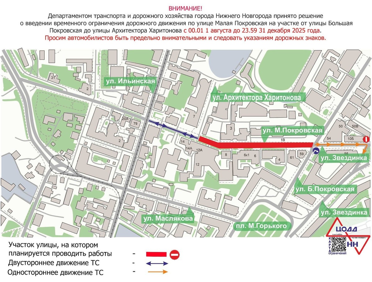 Проезд по улице Малой Покровской в Нижнем Новгороде останется закрытым до конца 2025 года из-за ремонта: https://www.nnov.kp.ru/online/news/6496738/