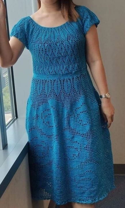 Вязаные платья снова входят в моду, при чём популярность набирают модели выполненные именно крючком, ажурными узорами или с узорчатой вставкой. Этому есть абсолютное объяснение, такие вещи придают образу женственность, элегантность и романтизм, подчёркивая красоту и уникальность обладательницы вязаного крючком шедевра. Взгляните на это прекрасное платье 👗 выполненное в технике филейного вязания, где каждый столбик, каждая новая петелька создаёт изящный неповторимый рисунок. Узоры к платью Узор "розы" К сожалению не могу сказать кто автор, но мне очень нравится модель! Пока всё Ваша Ольга