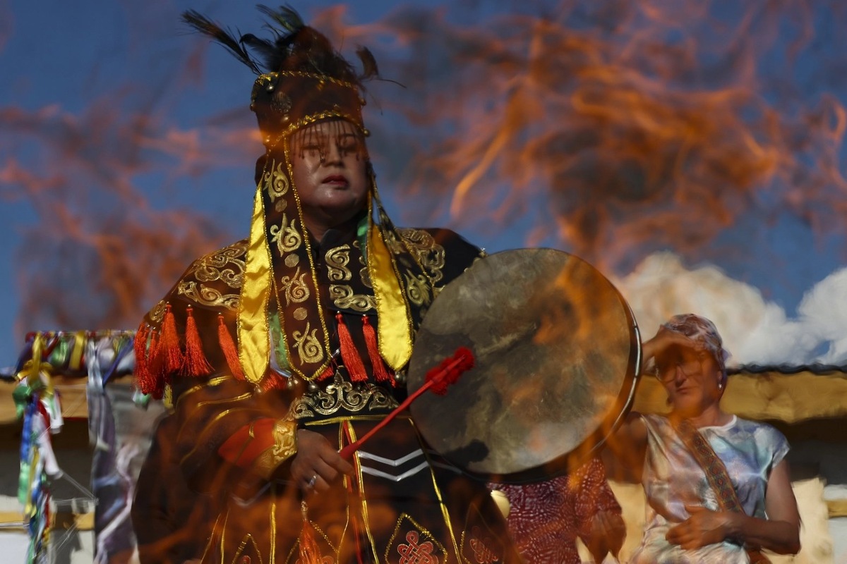 У шамана три руки и крыло из-за плеча... Снимок Кирилла Кухмаря с конкурса РГО «Самая красивая страна». Фото было сделано в столице Тувы Кызыле во время камлания. Так называют духовное действо — магический диалог между шаманом и духами. Ритуал включает древние мелодии и движения. Его цель — изгнать злые духи, найти причины болезни или направить благословение.
