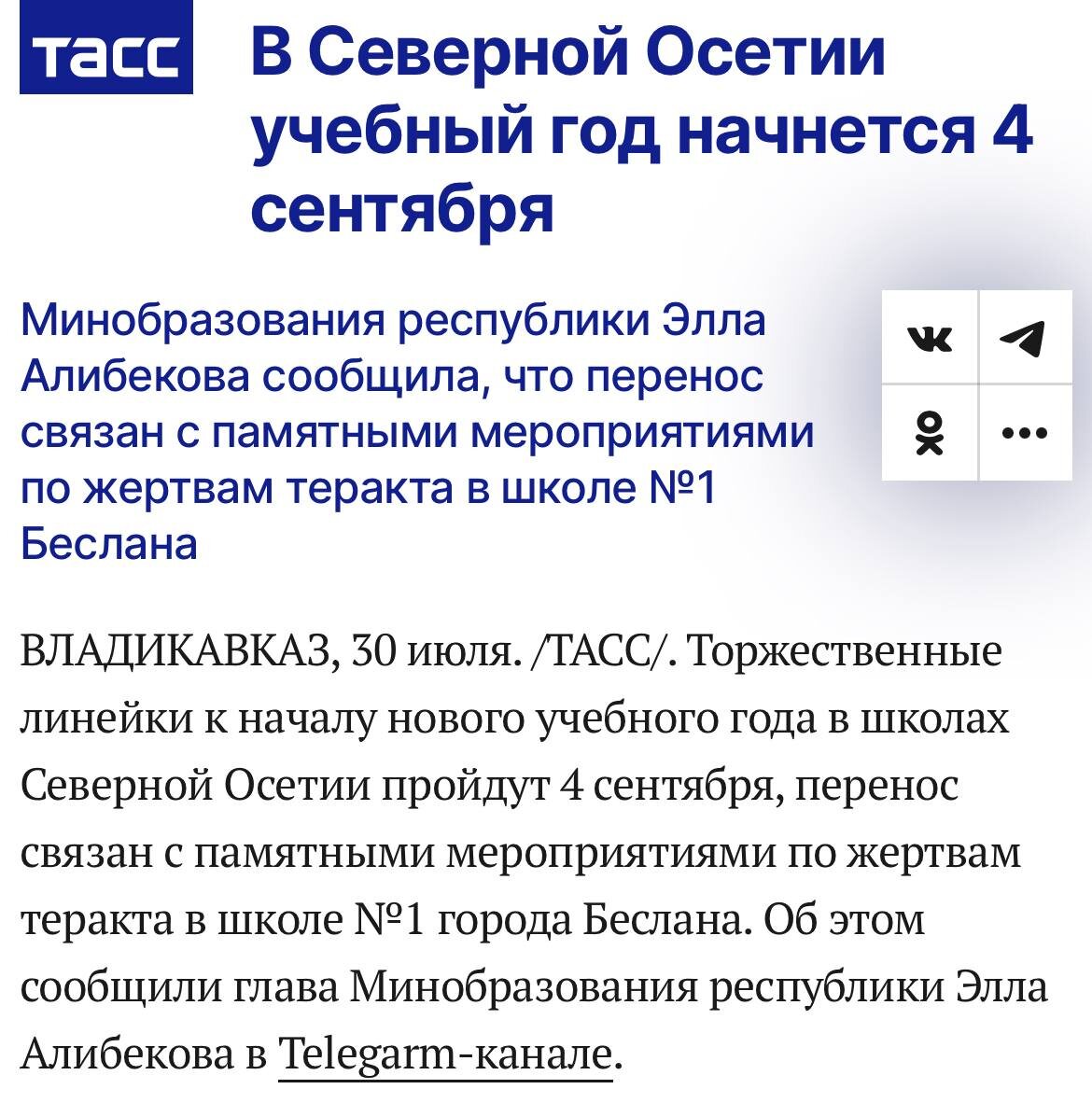 Важно, что федеральные СМИ в очередной раз зафиксировали, что в Осетии новый учебный год начинается с 4 сентября.
