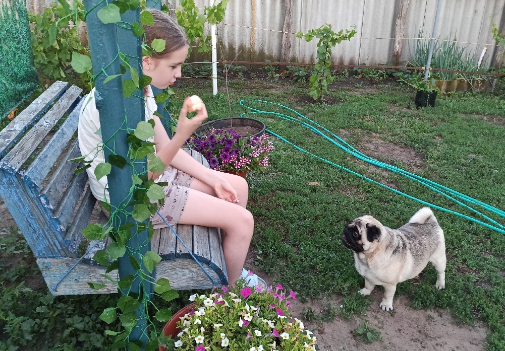 Дорогой дневник! Эх, как хорошо, что у летних школьных каникул еще целый месяц впереди! Мне так нравится, что я целый день не сижу один дома, а со мной мои верный друзья - Настя и Иван. Иван вообще дружбан в доску! Но и с Анастасией приятно проводить время. Есть правда у нее один небольшой, но жирный минус - она заведующая живым уголком у себя в комнате! Поэтому мне достается от нее очень мало внимания. Как не загляну к ней, у нее обязательно на руках свинья морская... Нет бы меня на ручках поносить! Ну и что, что тяжелый! Могли бы вместе с братом. Но вот сегодня у Анастасии выдалась свободная минутка и для милой хрюшки... Это она меня так ласково называет, кто не понял. Она качалась на качелях, а я крутился возле нее. Немного покачавшись, она встала и принесла себе яблок... И начала их есть! Ни котлету, ни сосиску, ни пирожок, ни мороженное, а фрукт! А я?.. А как же я?.. Я же не ем яблоки... Ты забыла?.. А я думал, что ты будешь есть и кидать мне кусочки вкусняшек. А я бы ловил их н