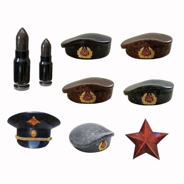Береты, фуражки, патроны и звезды из гранита - символы воинской чести