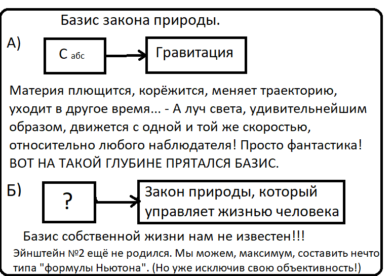 Совершенно очевидно, что Базис жизни человека прячется глубже, чем скорость света. Мы до сих пор его не нашли. Совершенно очевидно, что его нельзя почувствовать.