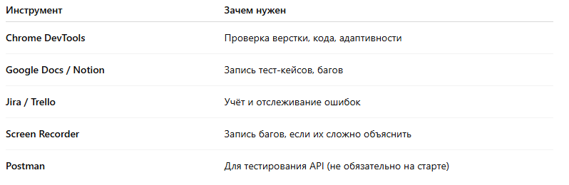 🧭 Что вы узнаете из этой статьи: Тестирование сайта — это проверка того, что всё работает как должно. Открываются ли страницы? Работают ли кнопки? Отправляются ли формы? И главное — корректно ли сайт отображается на разных устройствах и в разных браузерах. 🛠 Пример: пользователь заполняет форму обратной связи, нажимает «Отправить» — и ничего не происходит. Это баг. Его должен заметить тестировщик, чтобы пользователи не ушли с сайта с раздражением. Тест-кейс — это сценарий, по которому вы проверяете работу сайта. 🔽 Пример: Допустим, есть форма обратной связи: Поля: Имя, Email, Сообщение