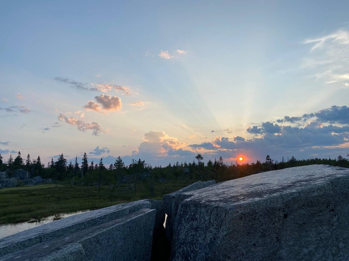 Аномальная жара для Карелии дала нам фантастически красивые закаты на вершине Горы, тучи слепней и мошки, теплые ночи и теплую воду в озере