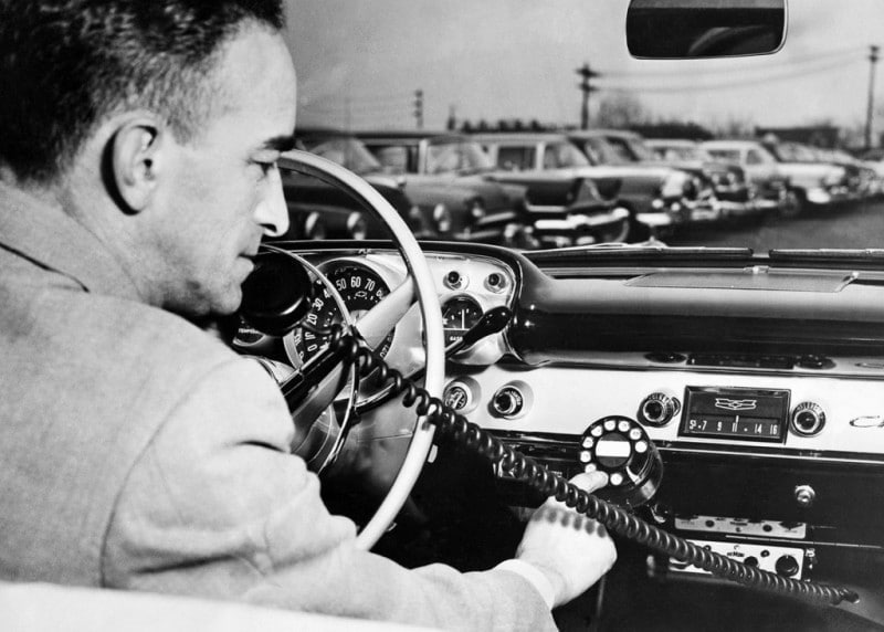 В середине XX века наличие телефона в автомобиле казалось настоящей фантастикой. Однако к 1950-м годам это стало реальностью — пусть и не для всех. Радиотелефоны начали появляться в машинах политиков, полицейских, пожарных и крупных бизнесменов. Связь на ходу превращалась из роскоши в инструмент оперативного управления и экстренного реагирования. Но насколько всё это было удобно и эффективно? История автомобильной радиосвязи началась сразу после Второй мировой войны. В 1946 году компания Bell System запустила первую коммерческую услугу мобильной телефонной связи в Сент-Луисе. Это не были мобильники в привычном смысле — огромный передатчик занимал половину багажника, весил десятки килограммов, а питание шло от мощного аккумулятора. Сам телефон выглядел как обычный дисковый аппарат, прикрученный к панели авто, с массивной трубкой и витым проводом. Такая связь была очень ограничена: только в пределах действия радиостанции, часто — с участием оператора-диспетчера. Чтобы позвонить, нужно бы