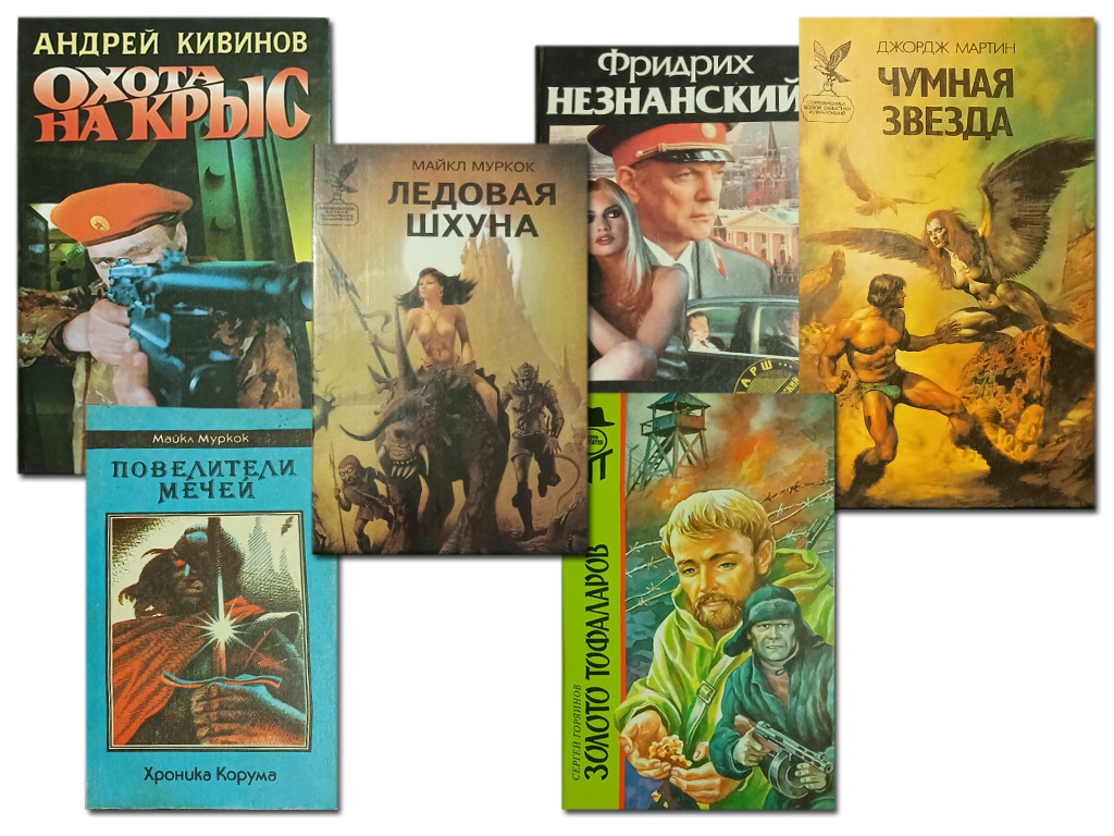Итак, очередная часть воспоминаний о книгах... О серии "Сокровища боевой фантастики и приключений" я уже рассказывал, но мимо некоторых книг пройти не могу. Например, благодаря этой серии я давным-давно знаком с творчеством Джорджа Мартина. К сожалению, о том, что это только одно произведение из цикла, состоящего из семи повестей и рассказов я узнал гораздо позже. Что естественно для тех лет - обложку украшает картина Бориса Вальехо, пересекающаяся с содержимым книги чуть более, чем никак Майкл Муркок. Знакомство с его творчеством началось именно с "Ледовой шхуны". Впрочем, знакомство не самое удачное - сам мир, описанный в книге понравился, а вот содержимое книги - на мой взгляд - из серии "ну, такое..." О чём книга - помню весьма смутно Книга "Повелители мечей" из цикла "Хроника Корума" понравилась куда как больше. Ясное дело, хотелось прочитать весь цикл - но сделать это было достаточно проблематично по причине отсутствия в продаже продолжения. Само качество издания разительно отлич