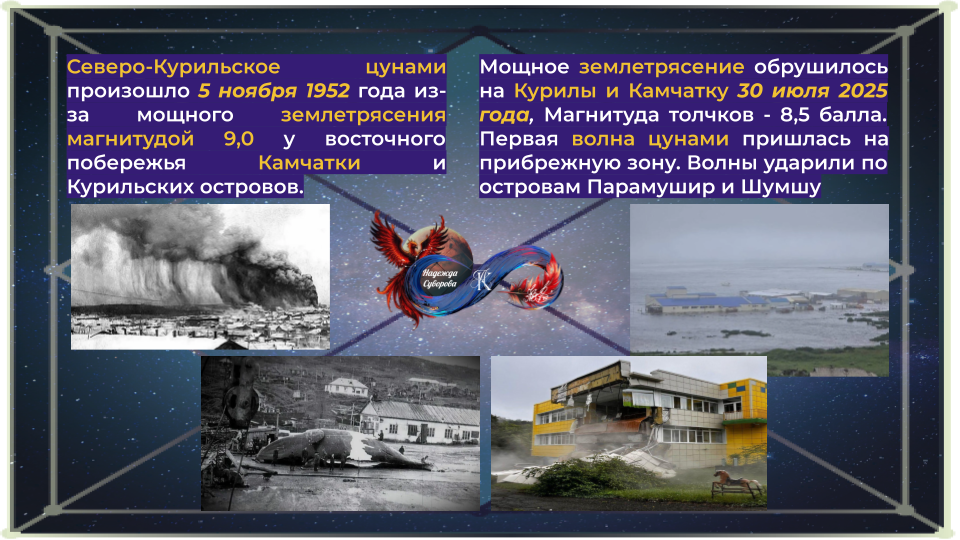 С 28 июля по 13 сентября Марс находится в знаке Девы, смещая фокус с импульсивных действий на практичность и детальный анализ. Однако ретроградный Сатурн из Рыб, формируя напряженный аспект к Марсу (ось 6/12), добавляет сложности. Ретроградные Сатурн и Нептун в Рыбах находятся в оппозиции к Марсу в Деве. Сатурн, планета ограничений и кармы, в соединении с Нептуном, управляющим водной стихией, усиливает вероятность природных катаклизмов, особенно связанных с водой. Оппозиция Марса и Сатурна, известная в ведической астрологии как яма-йога (пик 9 августа), связана с темами смерти и трансформации. Тщательно продумывайте свои действия и решения, поскольку ошибки могут иметь серьезные последствия. Аналогичная активизация оси 6/12 наблюдалась в ноябре 1952 года, когда Камчатку также потрясли мощные землетрясения и цунами. В тот период Сатурн и Нептун соединялись в Деве (напротив Рыб), а Марс формировал напряженный аспект к этому соединению из Стрельца (4 аспект). Повторяющееся взаимодействие