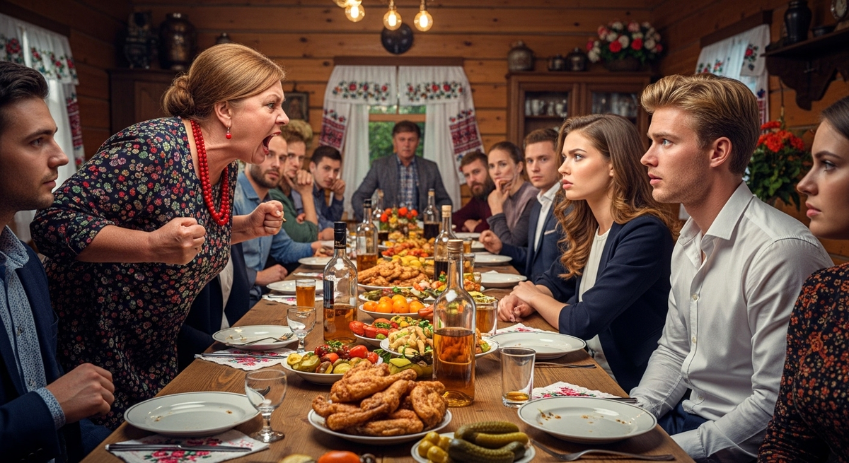Стол ломился так, что ножки жалобно скрипели. Салаты в хрустальных вазочках, жареная курица с золотистой корочкой, домашние соленья, запотевшая бутыль с самогоном. Вся родня в сборе: дядья, тетки, троюродные племянники. Шум, гам, тосты за молодых.