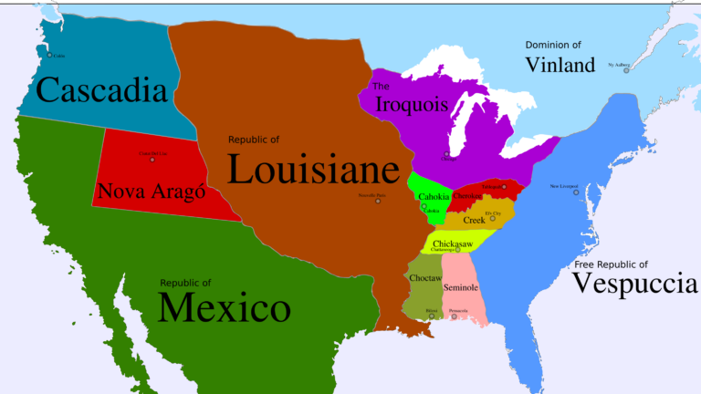 Вдохновленная примером Луизианы, Веспуччия попыталась вырвать свободу в собственной войне, но потерпела сокрушительное поражение, став объединенным доминионом Великобритании. Изначально проявляя благосклонность к коренным жителям, Веспуччия все же не смогла устоять перед искушением захвата их земель, что привело к восстанию во время Верденскрига. Крупнейшие индейские племена отвоевали независимость на западе.