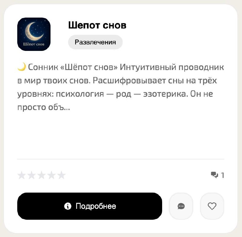 Сонник! У нас теперь есть собственный ИИ-сонник! (отправляем построено утром, чтобы вы успели его рассказать ИИ, пока не забыли) Сколько же снов у каждого из нас вызывали массу вопросов. Запутанные сюжеты, непонятные знаки. Они иногда пугают, а иногда приводят в восторг. И ведь их даже некому рассказать. Не напишешь психологу, подруги вряд ли дадут правильную трактовку. Точнее дадут, но исходя из собственной парадигмы. А ведь наши сны, это только про нас. Добавили сразу иллюстрацию, чтобы вам проще было поделиться этим этим нейроконсультантом в социальных сетях. Если успеете протестировать сами, дайте обратную связь или оценку в комментариях. Их обязательно увидит автор. Кстати, если кто-то из вас снимет видеообзор на любого из нейроконсультантов, обязательно разместим его на официальном YouTube канале. Самое время остановиться экспертом в области оценки и применения нейроконсультантов. #spellbook #сонник #трактованиеснов #нейроконсультант