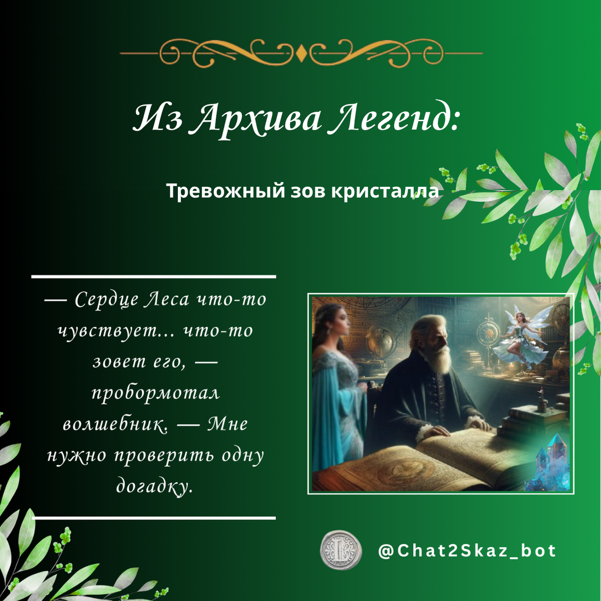 📜 АРХИВНЫЙ ДОКУМЕНТ №017 Из наблюдений Хранительницы Леса Элимы Обнаружено среди манускриптов, пропитанных солью и лунным светом Три луны прошло с момента восстановления Сердца Леса, но покой оказался обманчивым. Казалось, равновесие было восстановлено, и отец Виллиан, снова погрузился в свои манускрипты. Мы жили в спокойствии, но это было лишь затишье перед бурей. Прошлой ночью кристалл начал пульсировать тревожным светом, показывая видения бескрайнего моря. Я проснулась от странного зова, который шептал мое имя на неведомом языке. Этот зов привел меня к комнате отца. Виллиан не спал, он наблюдал за кристаллом Сердце Леса, который пульсировал ярким, тревожным светом. Изучив древние фолианты, отец обнаружил страшную истину: наш кристалл — лишь часть Трилистника Стихий. Сердце Леса, Душа Моря и Дыхание Неба когда-то были едины, поддерживая равновесие мира. Но теперь, восстановив одну часть, мы нарушили хрупкий баланс тысячелетий. А затем примчалась запыхавшаяся Лилия с ужасной новост