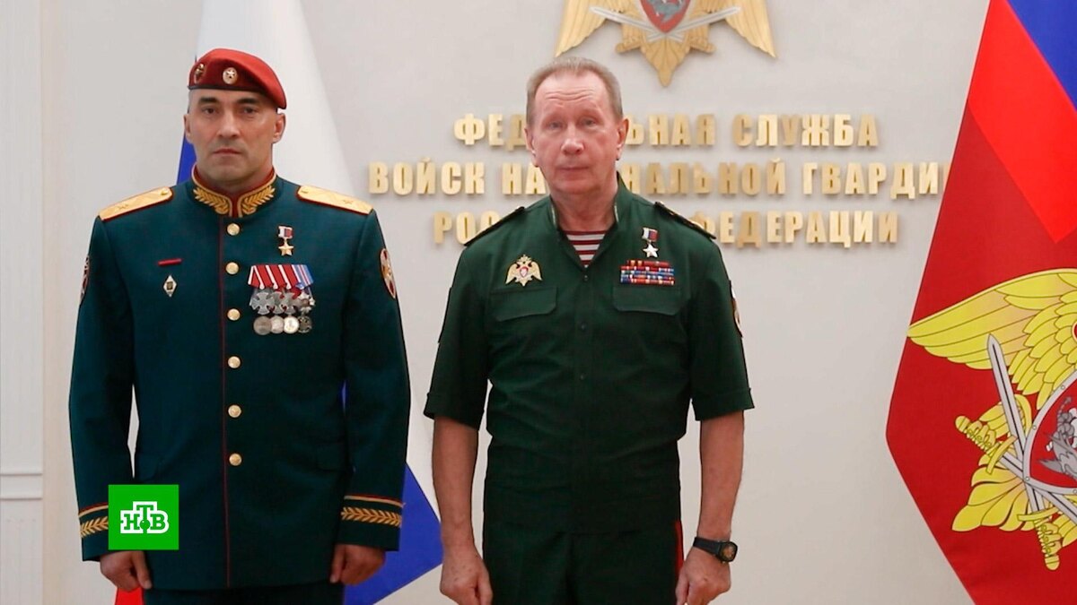 [ Смотреть видео на сайте НТВ ] «Золотую Звезду» Героя России вручили командиру 116-ой бригады нацгвардии Руслану Гарифуллину. Высшую награду командиру 116-ой бригады нацгвардии передал генерал армии Виктор Золотов. Офицер был удостоен высокого звания за мужество и доблесть, проявленные в ходе спецоперации. Умелые действия Гарифуллина и его подчиненных на передовых позициях гарантировали выполнение поставленных задач в том числе на белгородском и курском направлениях. В частности, им много раз удавалось останавливать диверсантов ВСУ и предотвращать попытки контрнаступления противника. [ Смотреть видео на сайте НТВ ]