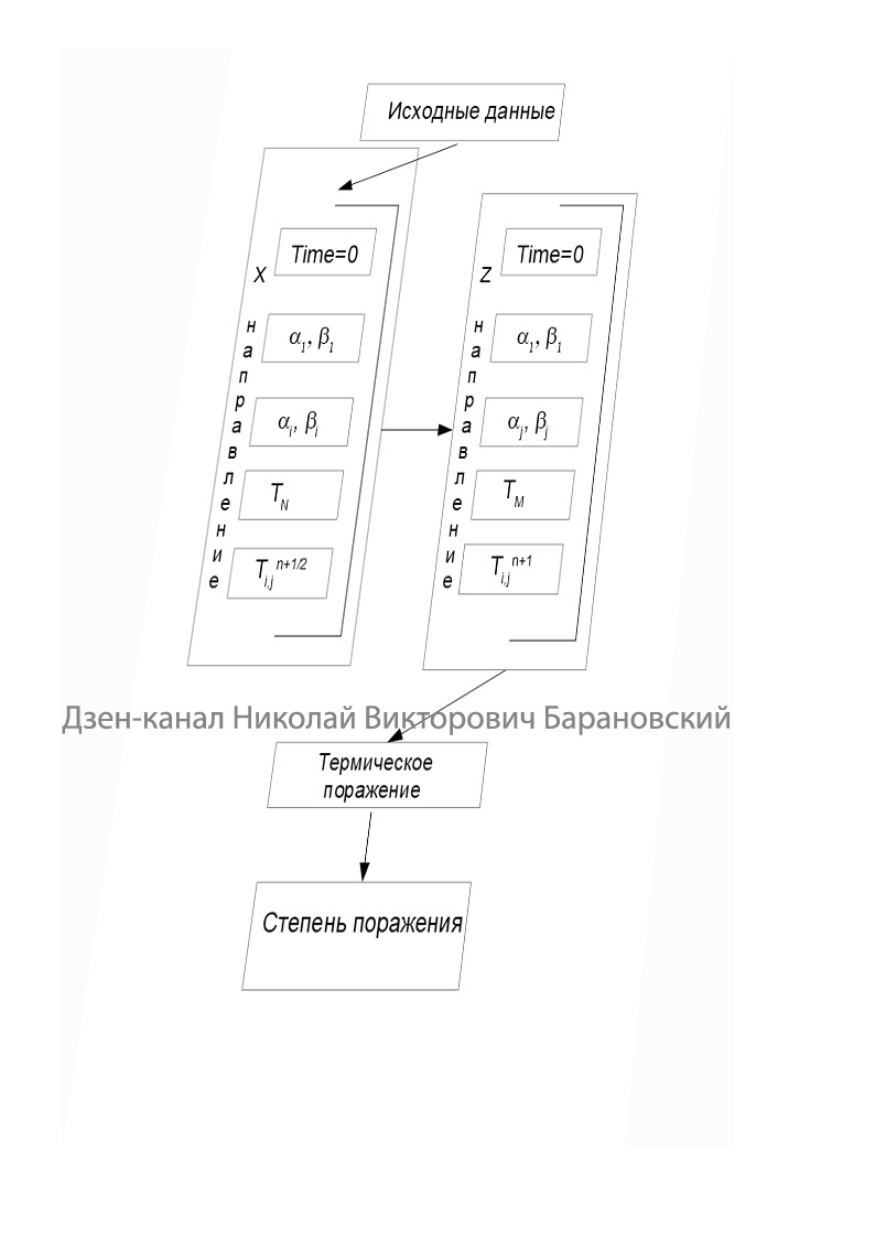 Назначение первой программы: Расчет поля температур и оценка степени термического поражения в результате воздействия излучения от лесного пожара на ткани человека