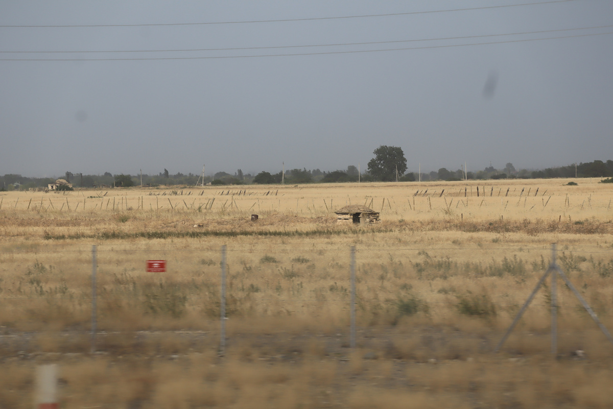 Территория Карабаха отличается от территории основного Азербайджана очень явно. Если в районах, где не было войны, поля все засеяны, деревни-посёлки плотно заселены, то тут сразу начинаются пустоши и заброшенности. Не, сперва, конечно, вы видите линию разграничения: остатки укреплений, доты, рвы.. За ними уже идут незасеянные заброшенные поля, поросшие бурьяном.