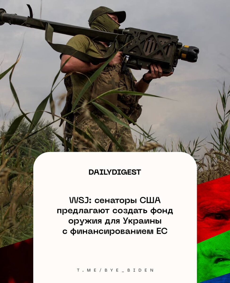 ☑️ Главные новости на утро 31 июля: 🔹WSJ: сенаторы США предлагают создать фонд оружия для Украины с финансированием ЕС. 🔹Канада признает Палестину в сентябре на Генассамблее ООН — Марк Карни. 🔹США планируют высадиться на Луну до конца президентского срока Трампа — и. о. директора NASA Шон Даффи. 🔹Сопрезиденты Никарагуа направили послание солидарности Путину, в котором заявили о поддержке РФ в борьбе с украинским неонацизмом. 🔹Тина Канделаки объявлена в розыск на Украине, следует из базы данных СБУ. 🔹Камалу Харрис скорее всего вызовут в конгресс США для дачи показаний об ухудшении состояния Байдена — конгрессмен Джеймс Комер. UPD: истребитель США F-35 разбился на авиабазе Лемур в Калифорнии, пилот катапультировался — ABC News. 👍 БайБайден. Подписаться