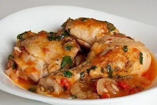 Чахохбили из курицы 📖ИНГРЕДИЕНТЫ Куриные бёдра или голени - 1 кг Лук репчатый - 3 шт. Помидоры - 4-5 шт. Сладкий перец - 2 шт. Уксус - 3-4 ст.л.(можно без него) Свежая петрушка Растительное масло - 3-4 ст.л. Вода - 100 мл. 🥘ПРИГОТОВЛЕНИЕ 1. Мясо промываем, солим, перчим. 2. Нарезаем лук, выкладываем в кастрюлю, добавляем масло и на медленном огне прожариваем до полуготовности. 3. На поджаренный лук укладываем курицу. Сверху засыпаем помидорами, нарезанными мелким кубиком и перцем. Чуть подсаливаем овощи, перчим, посыпаем нарезанной петрушкой. Можно по желанию добавить мелконарезанный чеснок 3-4 зубчика. 4. Поливаем уксусом, добавляем воду и закрываем кастрюлю крышкой. На огне чуть меньше среднего тушим до готовности курицы, минут 40-45. #второе #курица #ужин