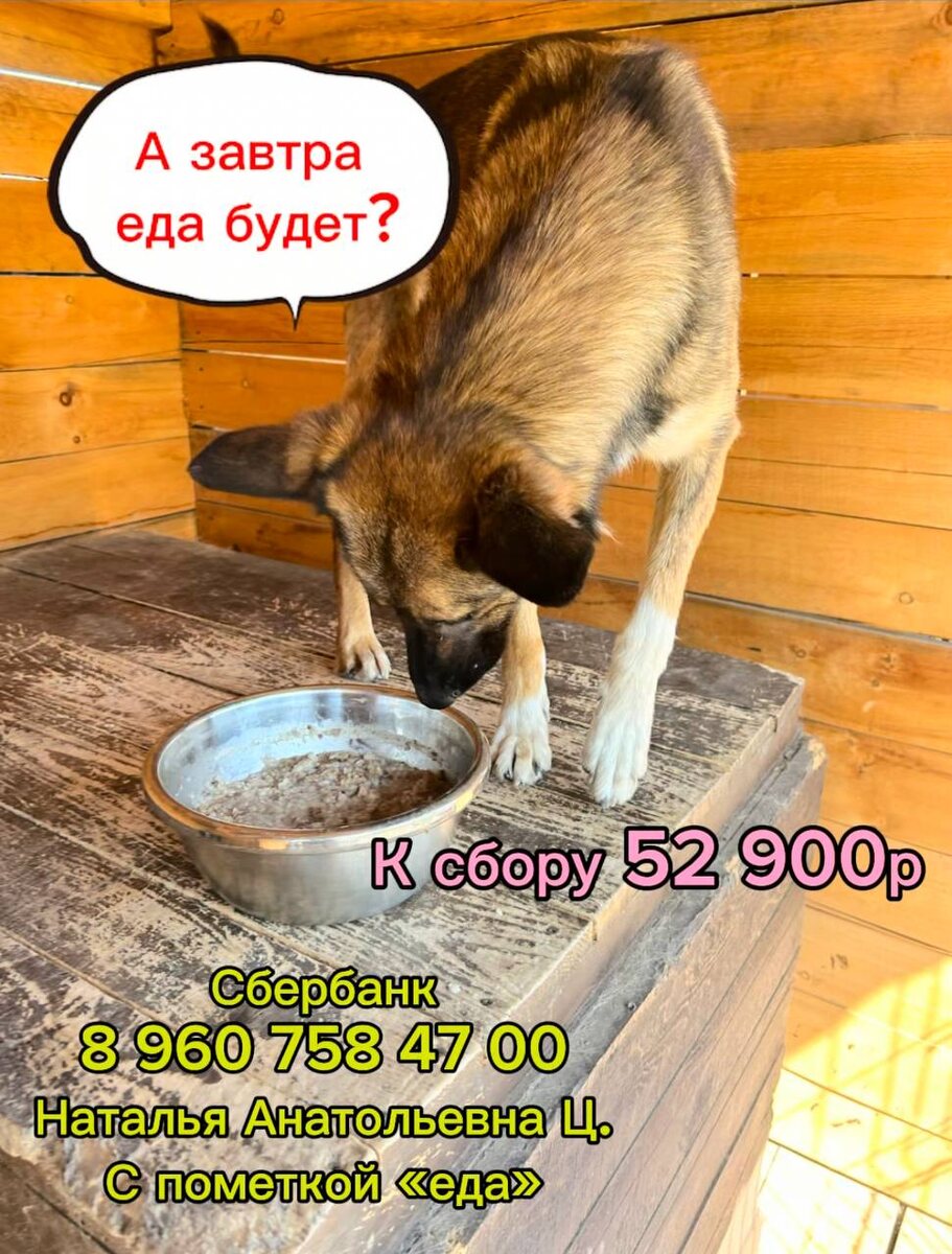 Как бы хотелось выкладывать только позитивные, интересные посты о жизни приюта🙏 Но, к сожалению, нам приходится просить о помощи, так как кроме вас- наших подписчиков, тех, кто нам помогает, мы не сможем справиться 🙏 На еду из 55000 собрано 2100(отчет прилагаем) 😔 Покупка мясного и крупы-это не прихоть, а то, без чего не может существовать приют🙏 Помогите нам пожалуйста собрать нужную сумму 🙏 Любая посильная вам сумма - это огромная помощь 🙏 💵 Помощь можно оказать по номеру: 8 960 758 47 00 Наталья Анатольевна Ц. С пометкой «еда»