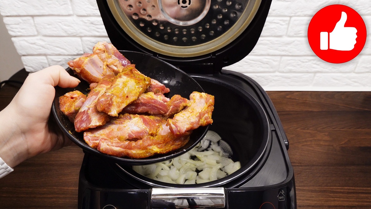 Ребрышки на луковой подушке в мультиварке на обед или ужин