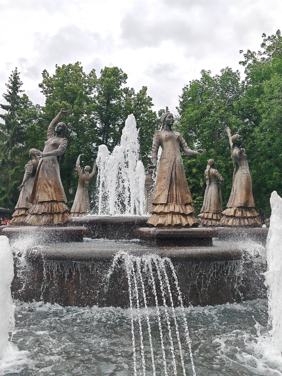 Самый узнаваемый уфимский фонтан называется "Семь девушек". Он заслуживает отдельного рассказа. Согласно легенде, семь башкирских сестёр потеряли кров и родных в набеге казахов и были угнаны ими в рабство. Несмотря на вставленный в раны на их ногах конский волос, свободолюбивые женщины сбежали от угнетателей. Спасаясь от преследования, они вошли в бушующее море и утонули непокорёнными... В 2015 году в Театральном сквере знаменитый башкирский скульптор Ханиф Хабибрахманов создал запоминающийся фонтан. Две чаши, по краям одной из которых располагаются семь статуй женщин. Моделями для них послужили девушки из ансамбля народного танца. Скульптурная композиция подсвечивается яркими огнями, как только в городе темнеет — это лучший момент для визита. Девушки танцуют, льётся музыка, шелестят струи воды… Однозначно, это то, на что стоит посмотреть в Уфе. Располагается достопримечательность в самом центре города. Как правило, локацию включают в программы обзорных экскурсий. В центре Уфы можно е