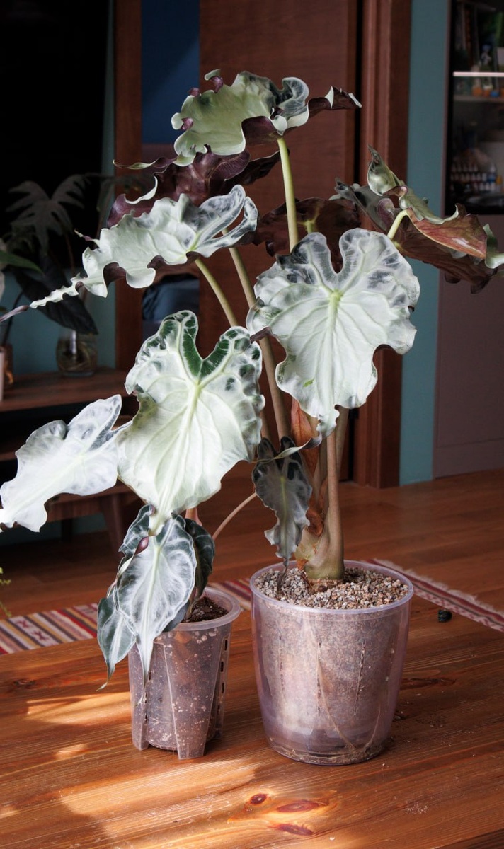 Отец и сын. Или мать и дочь, я запуталась 😅 Все-таки это самая красивая алоказия на свете. Хочется растить ее дублями и ставить на каждую полку Это алоказия вернула мне любовь к этим растениям, поэтому ко мне едут аж 3 вариегатные алоказии, посмотрим-с. Как думаете, какие? 😁 #alocasia_venomN16