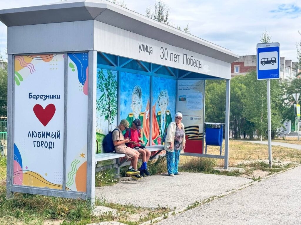 В Березниках на улице 30 лет Победы в районе МЖК остановочные комплексы оформили детскими рисунками. Такую идею для оформления остановок предложил глава округа Алексей Казаченко, сообщили в группе VK управления благоустройства администрации города Березники.