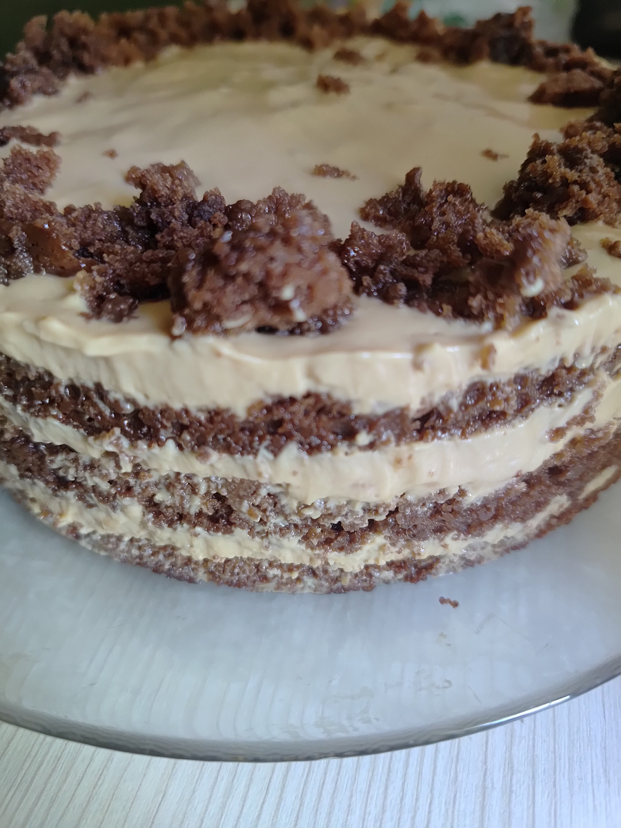 Добрый день! Предлагаю приготовить домашний шоколадный торт "Черный принц" на кефире с очень вкусным кремом из сметаны и вареной сгущенки. Порадуйте своих близких вкусной выпечкой. Готовится торт легко и просто! Для бисквита: Для крема: В миске соединить яйца, какао, соль и соду. Перемешать Влить кефир комнатной температуры Перемешать Всыпать сахар и муку, тщательно перемешать. Добавить растительное масло и еще раз перемешать до однородного теста. Вылить тесто в форму (у меня диаметр 18 см) и выпекать при 180С около 40 минут. Готовый бисквит остудить, срезать верхнюю шапочку и разрезать на 3 равных коржа. Для крема соединить сметану и вареную сгущенку Перемешать до однородности. Собрать торт, чередуя коржи и крем. Верх торта посыпать измельченной крошкой от среза. Оставить торт для пропитки на ночь в холодильнике. Наш торт готов!