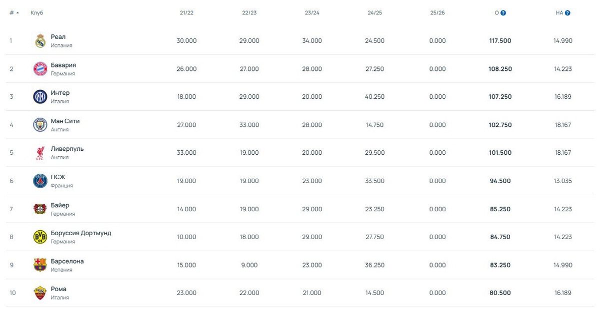 🔥 Мадрид вновь занял первое место в обновлённом клубном рейтинге УЕФА