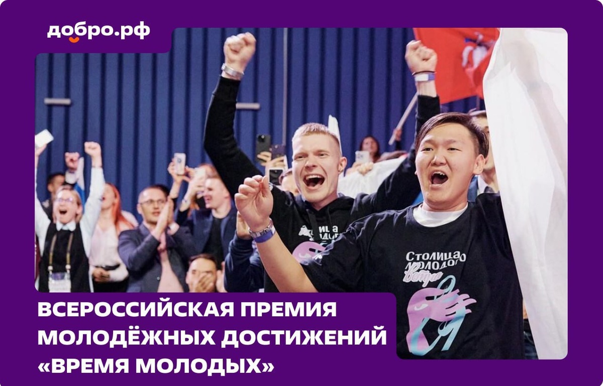 Росмолодёжь запустила Всероссийскую премию молодёжных достижений «Время молодых». Это конкурс для всех, кто создаёт условия для самореализации детей и молодёжи.
