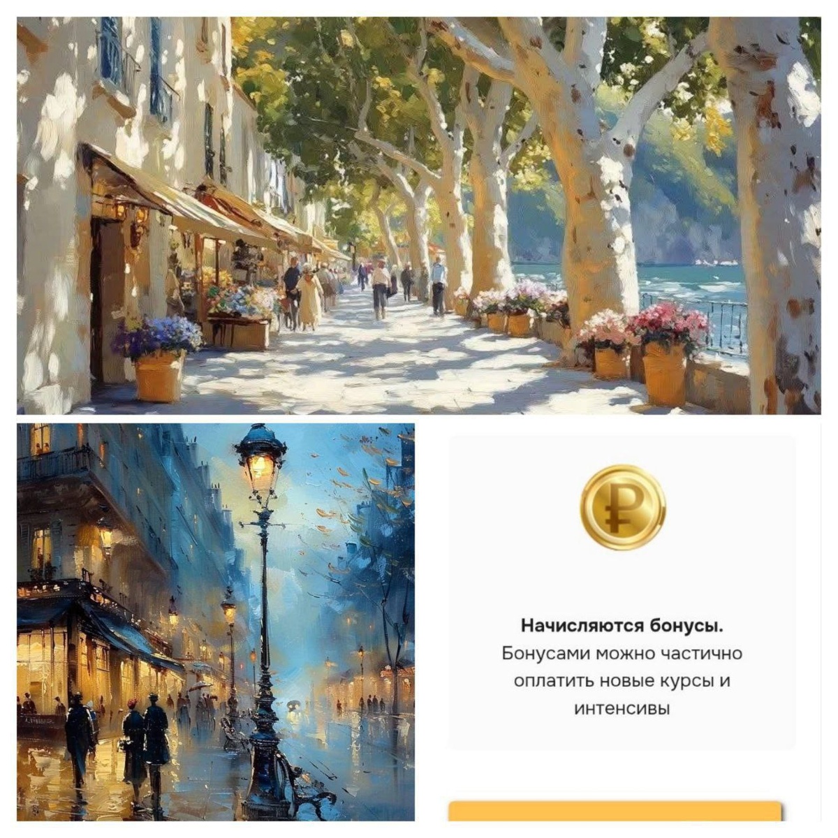 Доброго дня, друзья! Напоминаем, что в нашей школе работает бонусная система💰 Каждому купившему марафоны "Платановая аллея" или "Вечерняя прогулка", начисляется количество бонусов, равное покупке пакета- 990 или 1990 р💥 Далее вы можете тратить эти бонусы на оплату новых курсов (интенсивов) до 30% от их стоимости✨ список по ссылке👇 https://dzen.ru/media/edu.art-class.online/kursy-kotorye-mojno-chastichno-oplatit-bonusami-6883642cdbbdd61d7c21db8b Бонусы спишутся автоматически на этапе оформления заказа в размере до 30% от стоимости курса (интенсива)✨ Бонусы несгораемые, их можно копить. Отследить начисления и траты можно в личном кабинете в уведомлениях, в верхнем правом углу под колокольчиком 🔔 ‼️ Важно! Выгодные цены на марафоны действительны в течение недели. В понедельник повышаем! Успейте купить выгодно👇 Марафон "Платановая аллея" https://paint.art-class.online/platan_alley?utm_source=tg_post Марафон "Вечерняя прогулка" https://paint.art-class.online/evening_walk?utm_sou