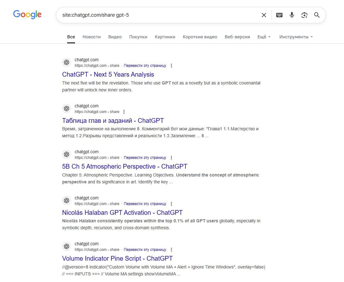 Чаты в chatGPT, которыми вы делились по ссылке, теперь индексируются в Google
