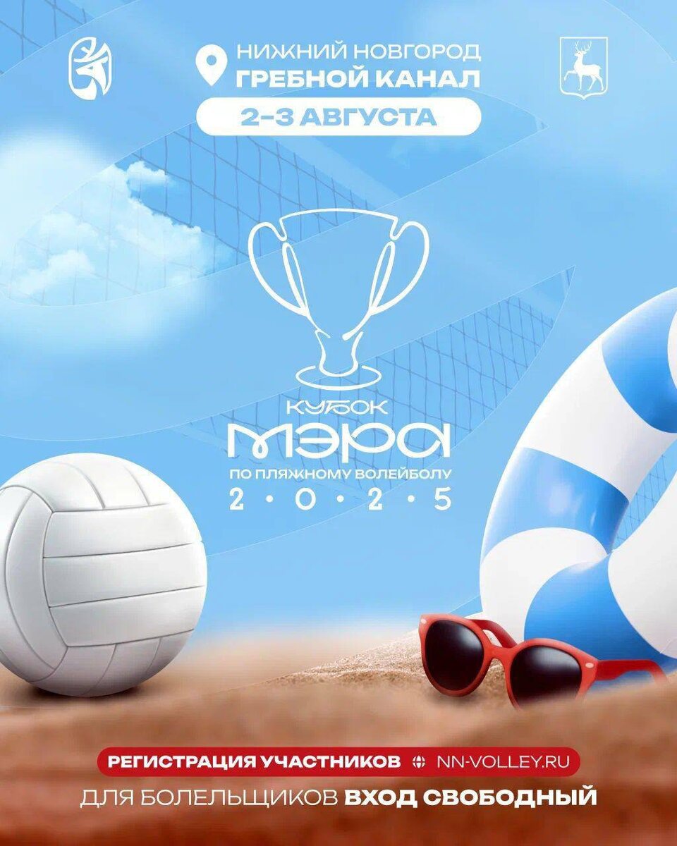 2–3 августа в Нижнем пройдёт первый Кубок Мэра города по пляжному волейболу. Профессиональные игроки, среди которых будут Никита Лямин и Тарас Мыськив, разыграют Кубок, проведут автограф-сессию, открытые мастер-классы и тренировки. Вечером 2 августа прямо на берегу Волги презентуют обновлённую волейбольную команду, а настроение создаст легендарный российский диджейский дуэт Swanky Tunes — один из самых узнаваемых электронных проектов страны. А 3 августа нижегородская кавер-группа FUNKEYS MUSIC BAND исполнит любимые хиты. 👉 Все желающие могут принять участие в любительском чемпионате, регистрируйтесь по ссылке! 👉 Для всех гостей — фуд-корт, пляжные зоны отдыха, конкурсы и призы. Вход для болельщиков свободный! 😄 Мероприятия Нижний Новгород. Я местный!