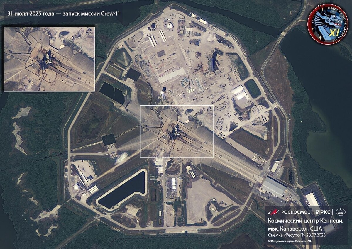 Сегодня, в 19:09 по московскому времени, состоится запуск космического корабля Crew Dragon с космонавтом Роскосмоса Олегом Платоновым на борту. Этот полет стал для Платонова первым в его карьере. Вместе с Олегом Платоновым в состав вошли астронавты NASA Зина Кардман и Майкл Финк, а также астронавт JAXA Кимия Юи. Вылет осуществляется в рамках программы перекрестных полетов Роскосмоса и NASA. На снимке, полученном спутником Роскосмоса «Ресурс-П», запечатлен космодром на мысе Канаверал, откуда и будет произведен запуск. Ранее мы писали, что «Роскосмос» испытает технологию возвращаемых ступеней ракет в ближайшие 1,5-2 года.