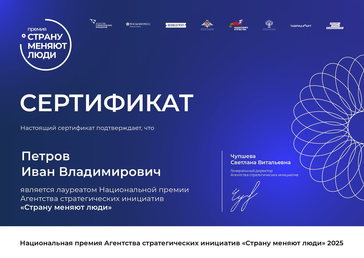 Новая триумфальная победа - так можно было бы написать. Но мы просто примем это, как подтверждение того, что идем верным путем. Директор ООО «Аира Флот» и исполнительный директор АНО «Аиралаб Рус» Иван Петров оказался в списке лауреатов престижной премии «Страну меняют люди», учреждённой по инициативе Президента Российской Федерации. Эта награда символизирует признание значительных достижений в области технологического прогресса, социальной трансформации, предпринимательской деятельности и государственного администрирования. ООО «Аира Флот», как один из ведущих представитель инновационного сектора, активно внедряет экологические инициативы, включая разработку и внедрение водных дронов – беспилотных надводных судов, в сферу экомониторинга. Высокотехнологичные беспилотники предназначены для мониторинга состояния водных объектов, что способствует устойчивому развитию и охране окружающей среды. Таким образом, Иван Петров, благодаря профессиональным достижениям команды и вкладу в развитие и