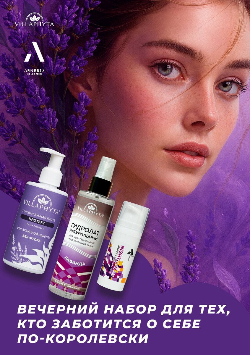 👍Королевский ночной уход👍 Вечер — это не просто завершение дня. Это ритуал, момент, когда ты остаёшься наедине с собой. Представляем идеальный трио для королевского ухода перед сном: ШАГ 👍Очищение и свежесть 👍Зубная паста ВИЛЛАФИТА ПРОТЕКТ – мягкая гелевая текстура с эфирными маслами лаванды и мяты, экстрактом винограда. Успокаивает, освежает, бережно заботится о дёснах. ШАГ 👍Увлажнение и ароматерапия 👍Гидролат ВИЛЛАФИТА «Лаванда» - аромат лаванды успокоит, снимет дневной стресс. Нежное антисептическое и противовоспалительное действие готовит кожу к глубокому уходу. ШАГ 👍 Глубокое восстановление 👍АРНЕБИЯ СЕЛЕКШН — Ночной крем с 5% мочевины и гиалуроновой кислотой - глубокоеувлажнение, мягкая регенерация, питание кожи. 👍Это не просто уход, это королевский вечерний ритуал. 👍Для кожи. Для спокойствия. Для внутренней гармонии. 👍👍👍👍👍👍👍👍👍 👍👍Перейти в интернет-магазин 👍👍👍👍👍👍👍👍👍 👍👍👍👍👍 👍Воспользуйтесь акцией «БЕСПЛАТНАЯ ДОСТАВКА»👍