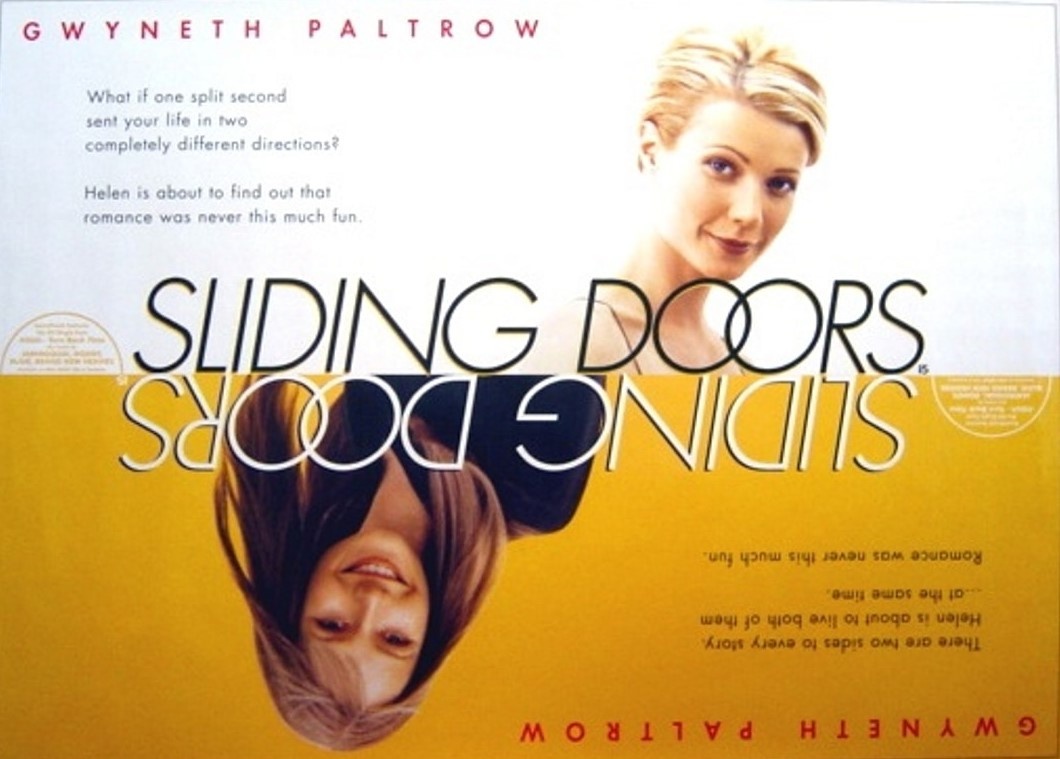 Меня спросили про этот фильм к комментариях к тексту про «Меняющих реальность». И да, почему бы о нём не поговорить? Он был снят в 1997 году. Его английское название — Sliding Doors. Если переводить дословно — «Закрывающиеся двери». Мне кажется, такое русское название было бы лучшим — оно звучит точнее и чётче. На некоторых киносайтах жанр фильма (разумеется, в основном это мелодрама, но как бы с примесью), среди прочего, определяют как фэнтези. Хотя слово «фантастика» уместнее. Сюжет здесь основывается на знаменитой многомировой интерпретации Эверетта. Итак, есть главная героиня — Хелен (играет Гвинет Пэлтроу). Однажды её увольняют. Она спускается в метро и… тут возникает два варианта развития событий (рождаются две разных параллельных вселенных). Фильм отрицает абсолютный фатализм, но и не допускает безграничной свободы, очерчивает всё-таки некоторые рамки. Безусловно, жизненный путь в результате того или иного выбора/события меняется. Но не радикально. Это важный контраст с нашей